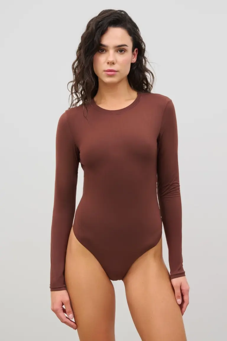 Комфортний, еластичний боді без застібок — ідеальна річ на щодень. Створений із преміального італійського трикотажу (76% поліамід, 24% еластан), цей